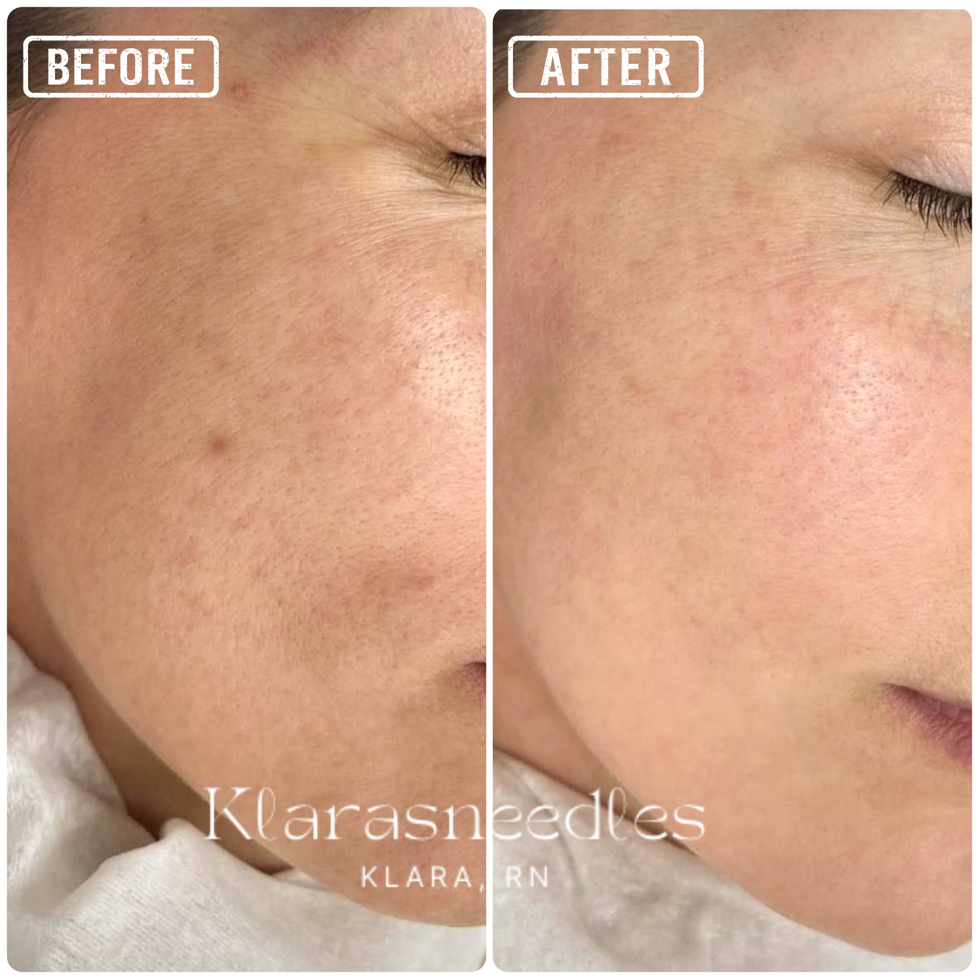 Microneedling paired with FDA-approved add-ons such as Exosomes, salmon DNA, and PDGF enhances collagen production, accelerates skin repair, and improves texture, tone, and radiance. This treatment also helps reduce pigmentation irregularities, post-acne and post-surgery scarring, and fine lines.